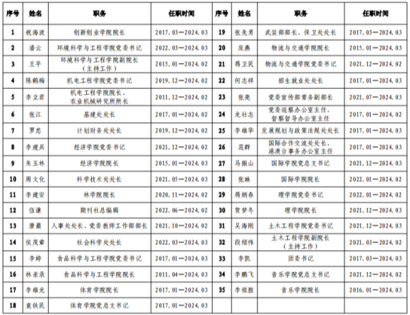 根据中共中央办公厅、国务院办公厅《党政主要领导干部和国有企事业单位主要领导人员经济责任审计规定》和《中南林业科技大学内部审计工作规定》《中南林业科技大学党政领导干部经济责任审计实施办法(修订)》,受学校组织部委托,我处决定派出审计组,自2024年9月3日起,对祝海波等35名处级领导干部进行任期经济责任审计,具体名单如下: